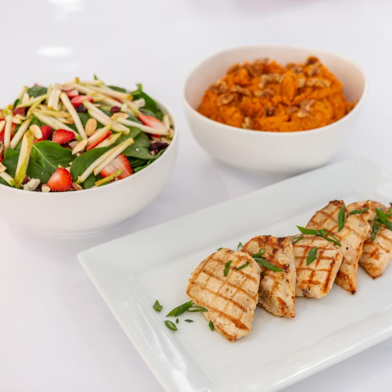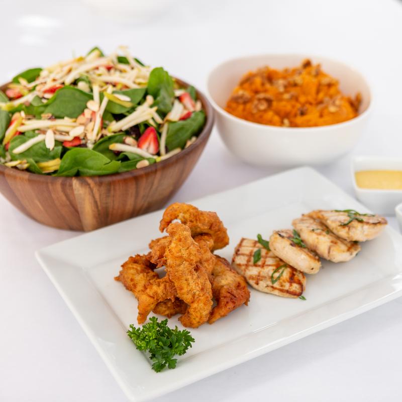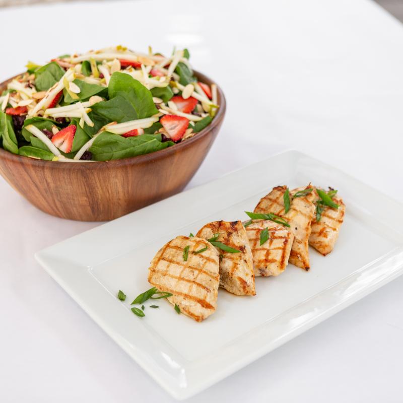 Finer Combination: Any 1/2 salad plus your choice of any 1/2 soup or grilled chicken topping • Dressings Balsamic Vinaigrette(GF), Honey Mustard(GF), Ginger-Apricot Vinaigrette, EVOO & Aged Balsamic(GF), Raspberry Vinaigrette, Southwest Ranch, Dijon Vinaigrette, Ranch(GF), Caesar, Strawberry Balsamic Vinaigrette(GF)